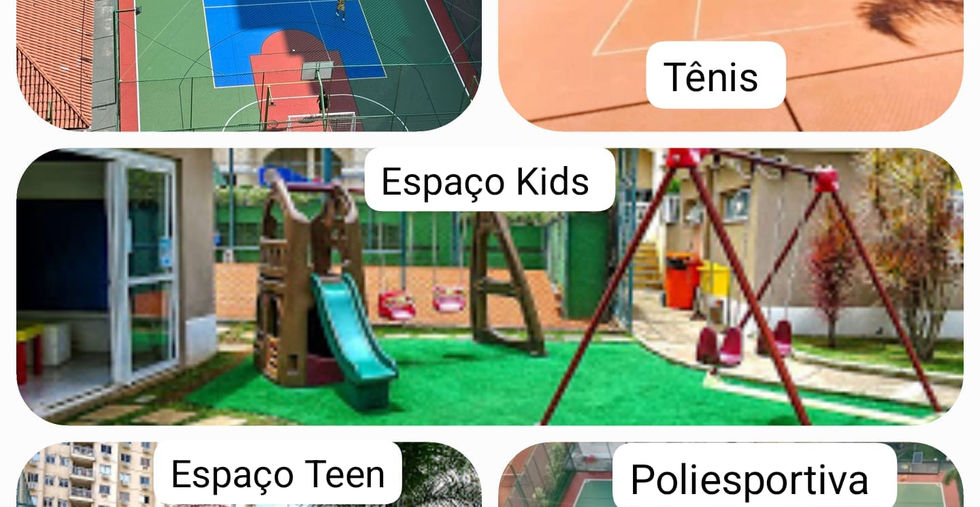LAZER: academia, sauna, salão de festas, parquinho com diferentes brinquedos, espaço teem, espaço kids, quadra poliesportiva, quadra de tênis (saibro).